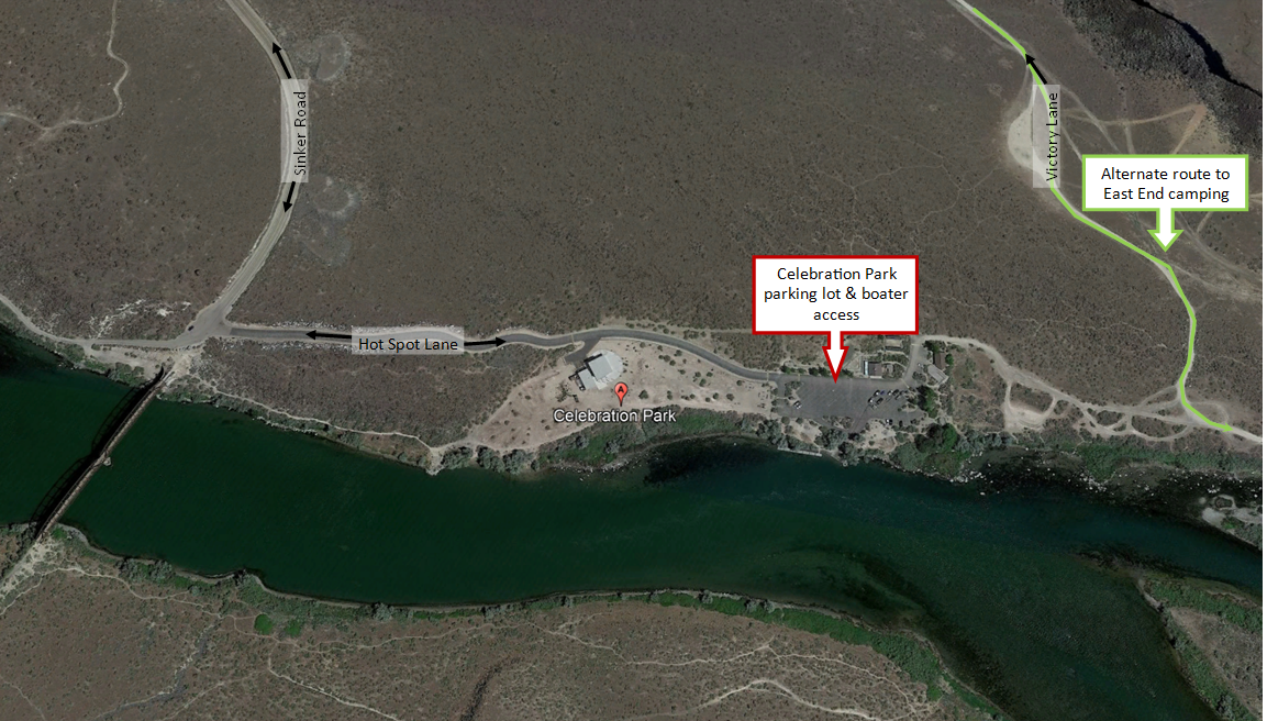 For visitors heading to the East End camping area and the Halverson Trailhead, it is recommended to enter the park from Victory Lane (see attached map):