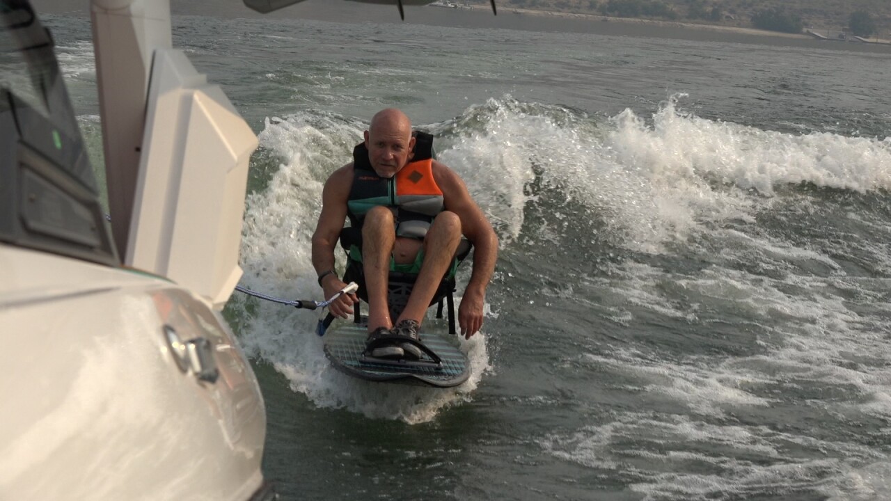 Heidi Pearson broke her back in a car accident in 2019 and she was able to try wake surfing for the first time at Lucky Peak Reservoir on Friday.