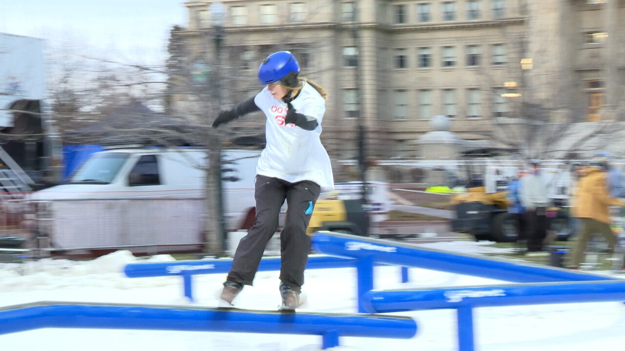 Leading up to midnight, young skiers and snowboarders showed their skills at the rail jam competition, including 15-year-old skier Theo Grant.