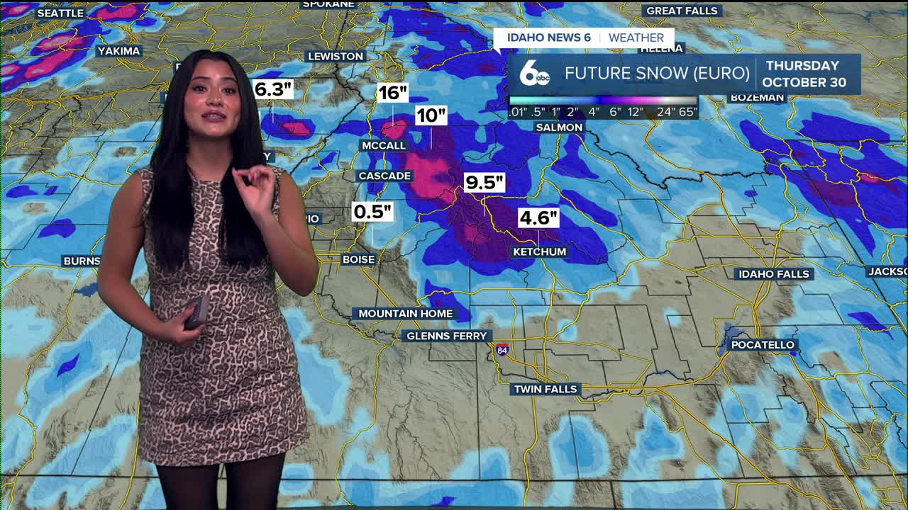 Snow levels will start near 6,500 feet on Saturday but drop behind the cold front to around 4,000–5,000 feet by Sunday. That will lead to 4–12 inches of mountain snow, including about 3–4 inches in McCall.