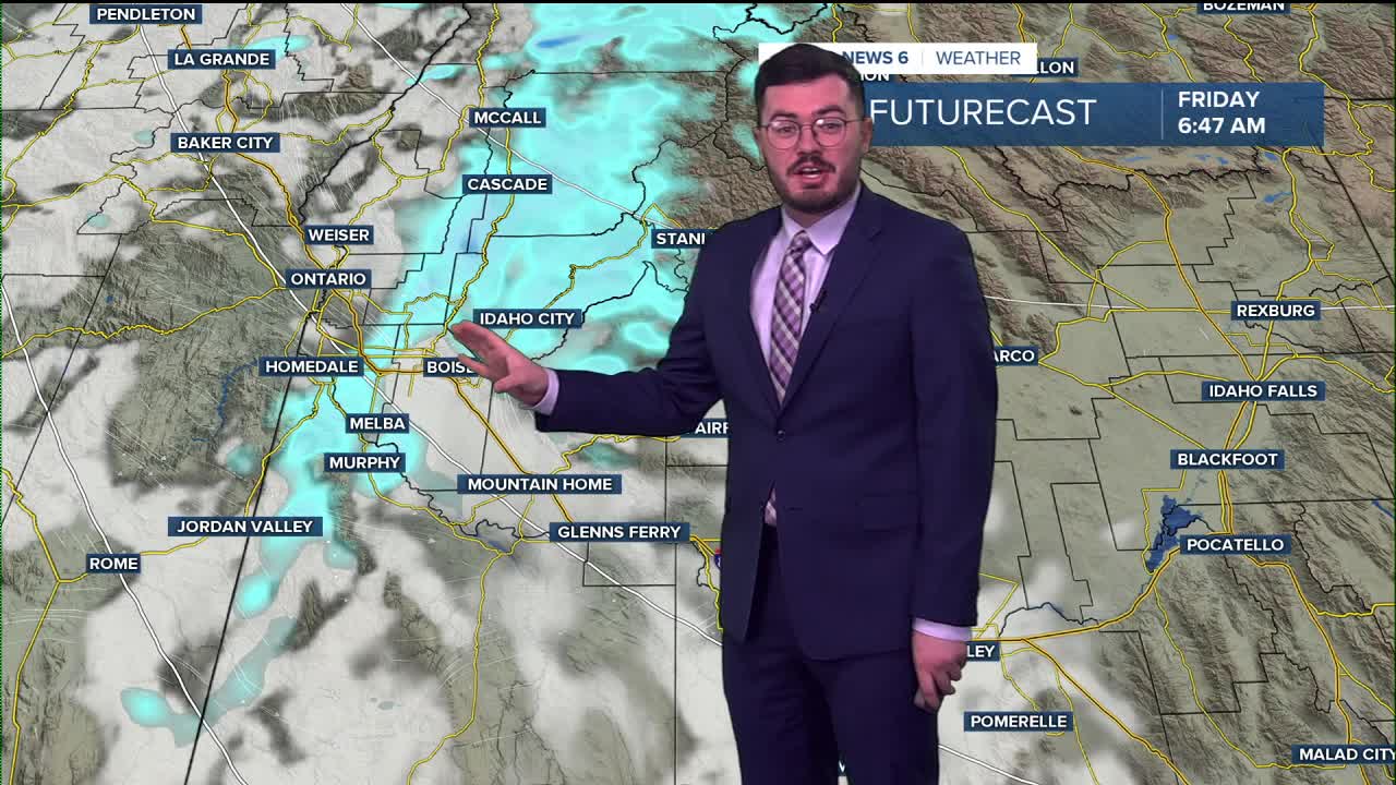 Outside of that, clear conditions into the weekend a bump in temperatures. We climb right out of the 40's into the 50's and even a shot of 60° on Monday for Boise. Dry conditions don't last long after that as high chances of showers return Tuesday. No chances of valley snow but mountains once again will get a nice dusting.