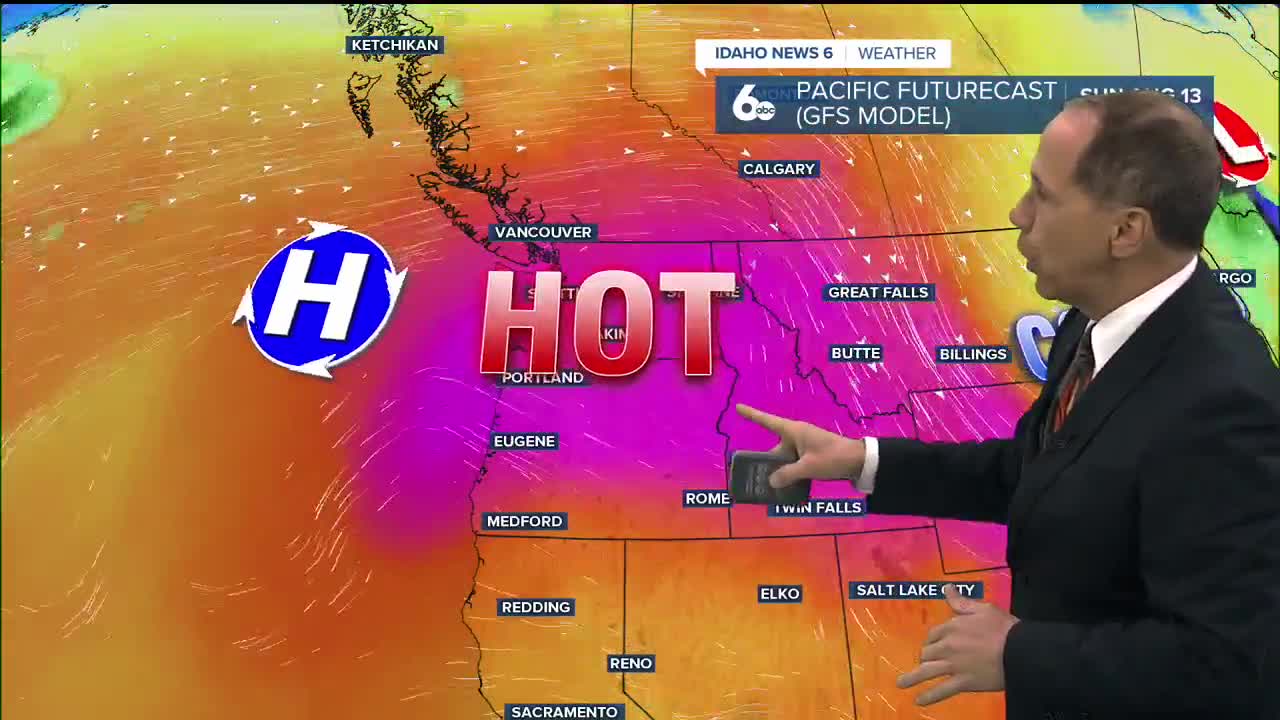 Slightly cooler air has moved into Idaho for Thursday but the heat will be building into the weekend. High pressure will heat up the northwest and that heat will reach Idaho as well.
