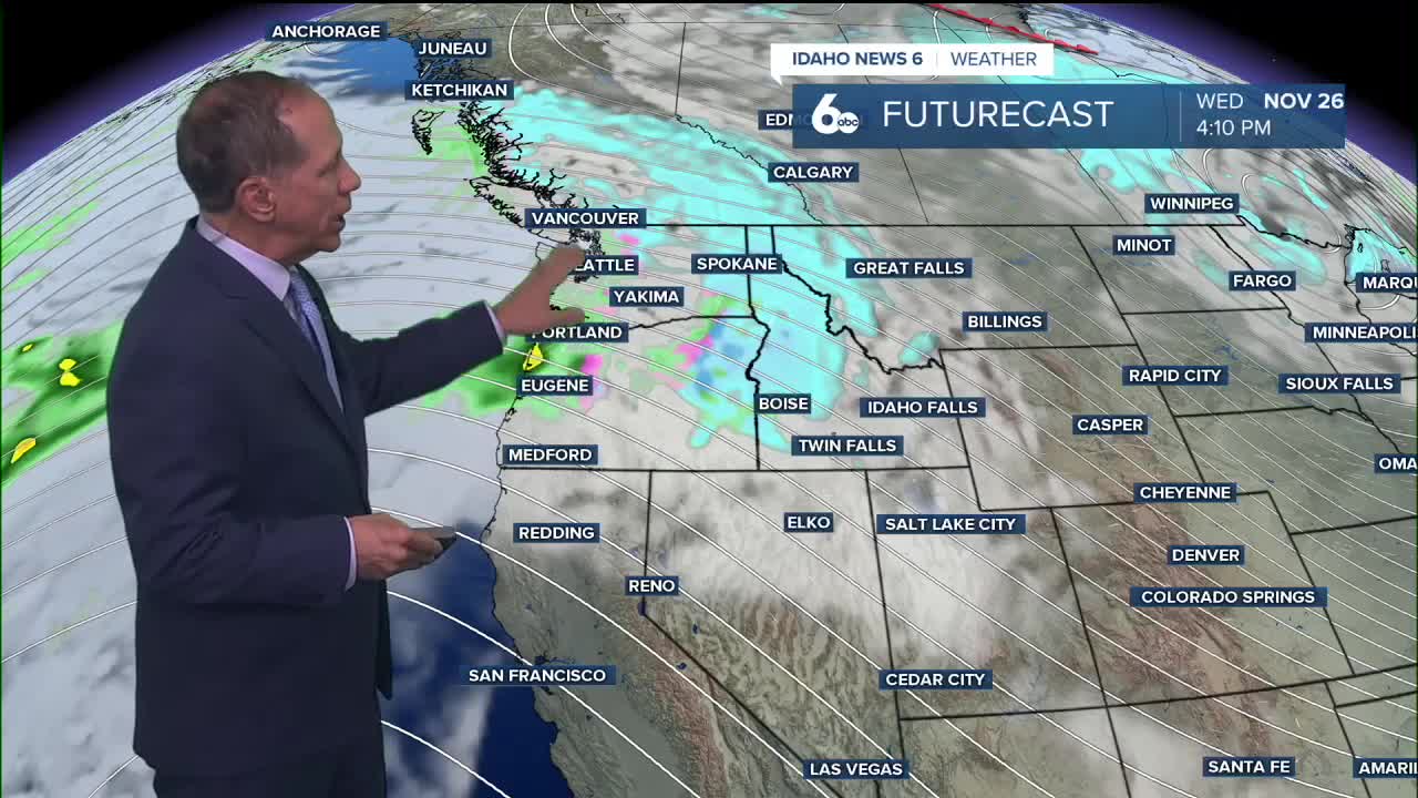 Precipitation Wednesday is likely to be very orographic, as only a few weather models show a shortwave providing dynamics. Precipitation will last through much of Thanksgiving Day, but that night another brief dry spell will set in before what is shaping up to be a much colder weekend.
