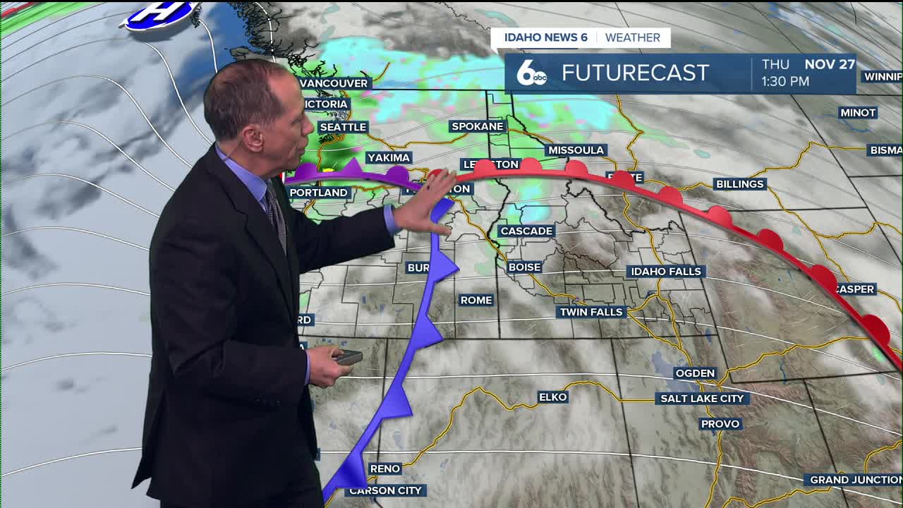 The warm front will raise snow levels dramatically from 3,000 to 4,000 feet Wednesday morning to 7,000 to 8,000 feet by evening. Snowfall accumulation in northern areas is expected to be light, with about 0.5 to 2 inches in mountain valleys and 1 to 3 inches on ridges along with Tamarack and Brundage. Bogus Basin will get less than an inch.
