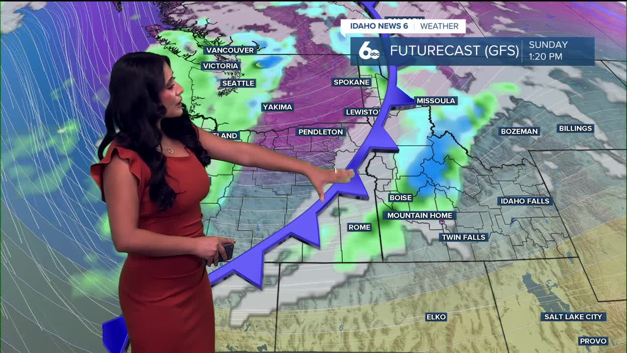 A deeper trough dives in from British Columbia on Sunday, bringing more widespread rain, with heavier showers expected in the afternoon. Behind the cold front, a much cooler air mass settles in. Snow levels drop to around 5,000–6,000 feet late Sunday into early Monday, meaning our higher mountain passes could pick up a light mix.