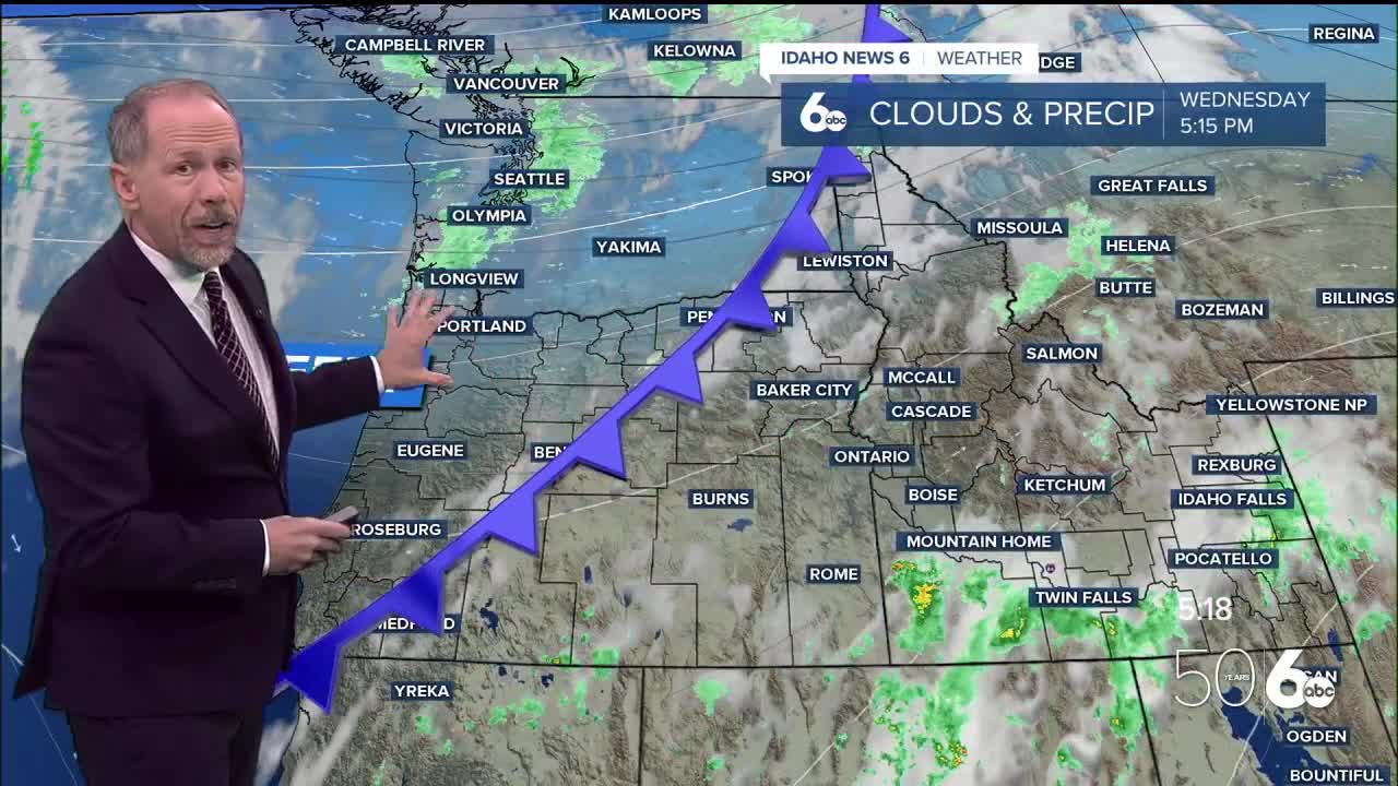 Clouds & sprinkles moved across Ada County Wednesday morning while some more notable showers hit Ontario, Oregon around 10 am. Clouds are breaking as expected and temperatures will top out in the mid-70s in Boise but could be a bit cooler in the western valley due to more clouds and the morning showers.