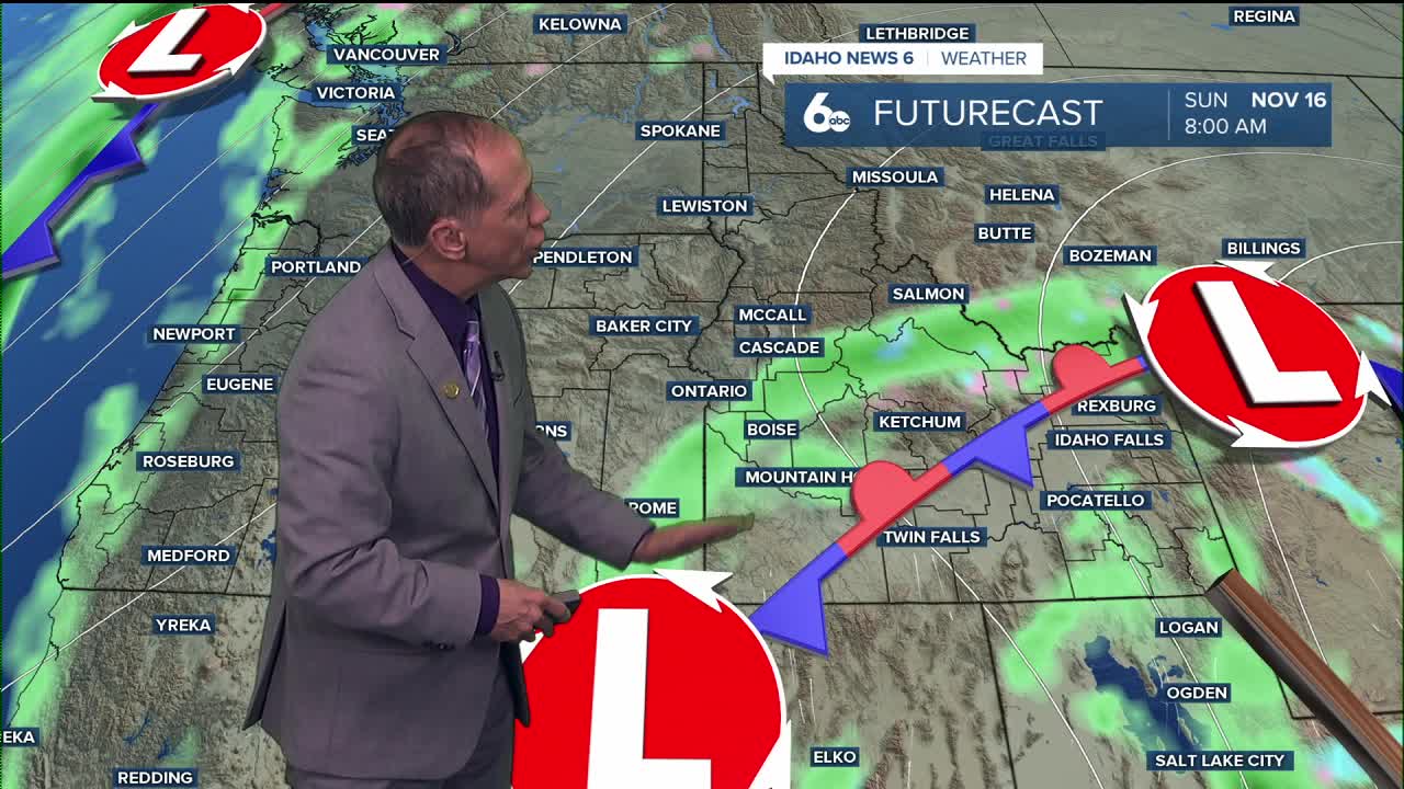 A more significant weather pattern develops Sunday as a Pacific upper low moves inland across southern California and into Nevada. This system will bring widespread showers across the region by sunrise Sunday, with a 40% chance of rain and highs near 53 degrees.